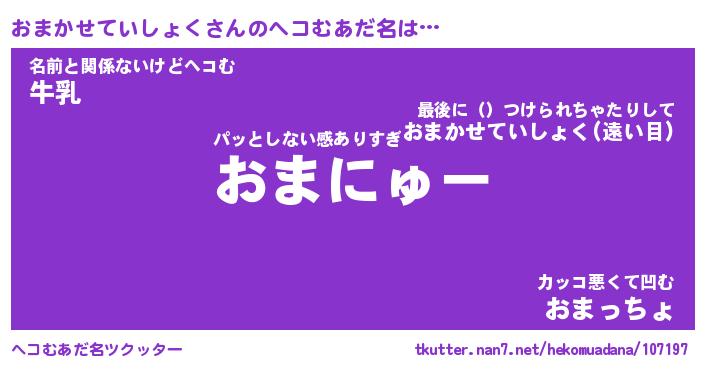 | ポケモン風あだ名 | 『オマチュウ』『オマカダネ』 |