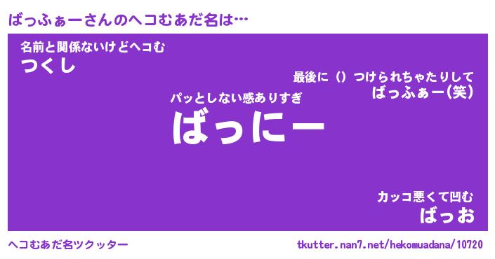 | ファンタジー風あだ名 | 『バッフェル』『エターナルバッファーー』 |