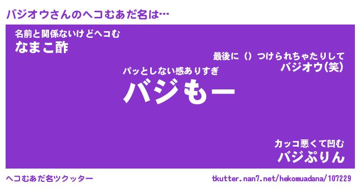 | 意味不明あだ名 | 『ペロリンバジオウ』『永久保存バジオウ』 |