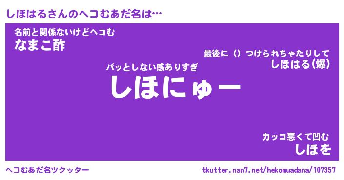 | 意味不明あだ名 | 『ペロリンしほはる』『永久保存しほはる』 |