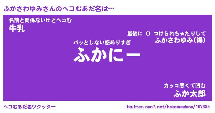| ヒーロー風カッコイイあだ名 | 『スーパーフカサワユミ』『暗黒騎士フカ』 |