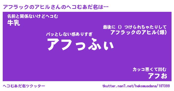 | 意味不明あだ名 | 『ペロリンアフラックのアヒル』 |