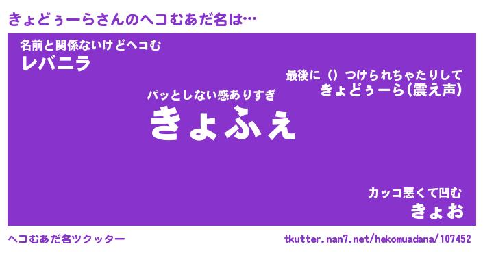 | 恥ずかしいあだ名 | 『プリティーきょどぅーら』『きょっちょ』 |