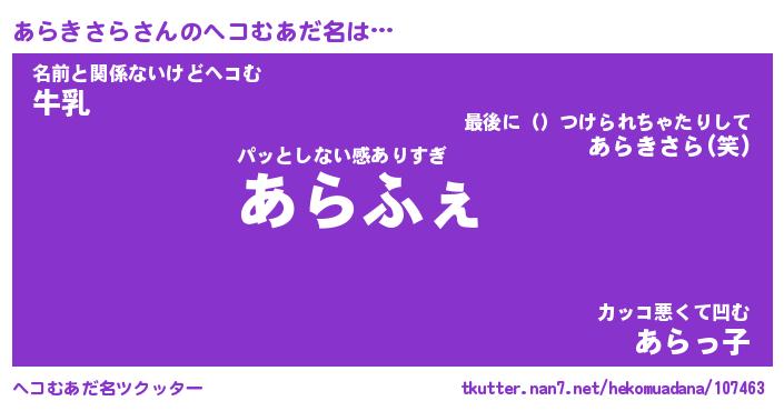 | 胡散臭い通販商品みたいなあだ名 | 『モテモテ間違いなし水晶球…その名も「あらきさら」』 |