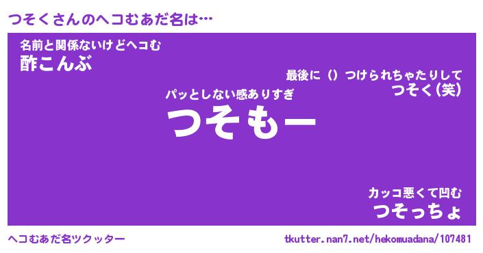 | ポケモン風あだ名 | 『ツソチュウ』『ツソクダネ』 |