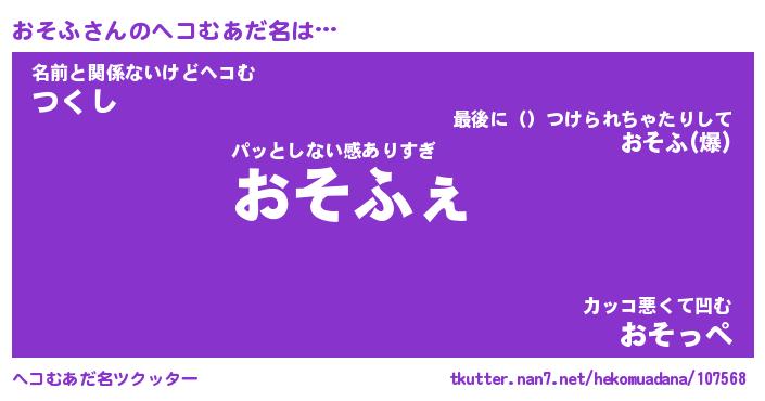 | ヒーロー風カッコイイあだ名 | 『スーパーオソフ』『ウルトラおそふマン』 |