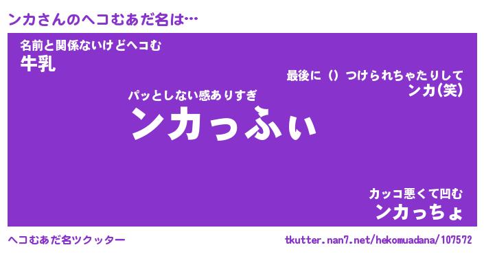 | ポケモン風あだ名 | 『ンカチュウ』『ンカダネ』『ヒンカ』 |