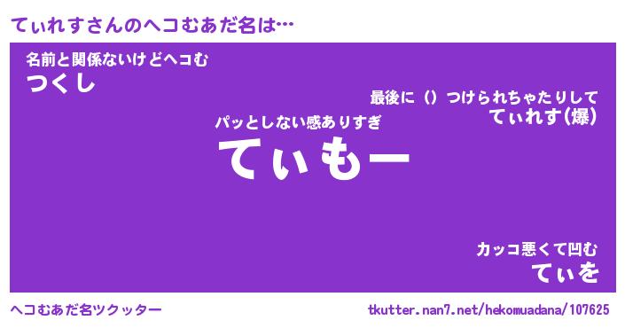 | 意味不明あだ名 | 『ペロリンてぃれす』『永久保存てぃれす』 |