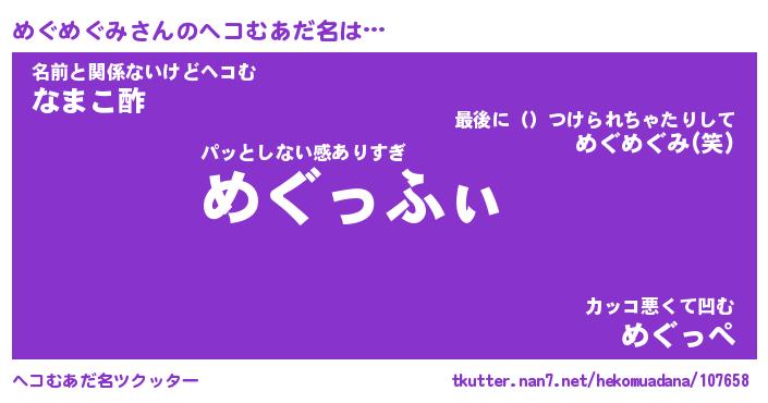 | 2回繰り返すあだ名 | 『めぐめぐ』『めめぐぐ』『ねばねば』 |