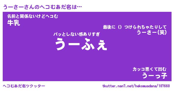 | ファンタジー風あだ名 | 『ウーフェル』『エターナルウーサーー』 |