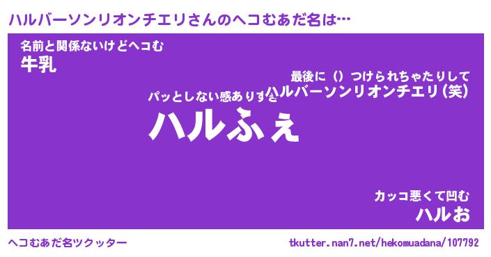 | ヒーロー風カッコイイあだ名 | 『スーパーハルバーソンリオンチエリ』 |