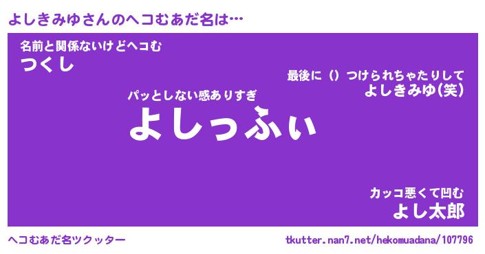 | ヒーロー風カッコイイあだ名 | 『スーパーヨシキミユ』『暗黒騎士ヨシ』 |
