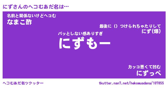 | 男性向けラノベタイトル風あだ名 | 『にずの憂鬱』『ノーゲーム・ノーニズ』 |