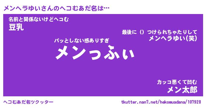 | ヒーロー風カッコイイあだ名 | 『スーパーメンヘラユイ』『銀牙騎士メン』 |