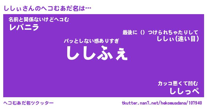 | ヒーロー風カッコイイあだ名 | 『スーパーシシィ』『ウルトラししぃマン』 |