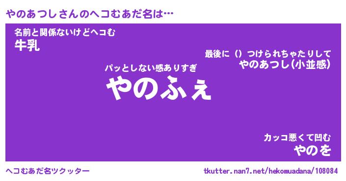 | ファンタジー風あだ名 | 『ヤノフェル』『エターナルヤノアツシー』 |