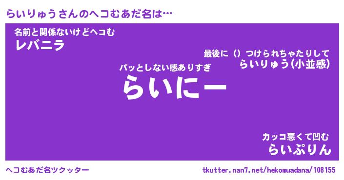 | 恥ずかしいあだ名 | 『プリティーらいりゅう』『らいっちょ』 |