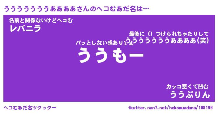 | 2回繰り返すあだ名 | 『うううう』『うううう』『ぬれぬれ』 |