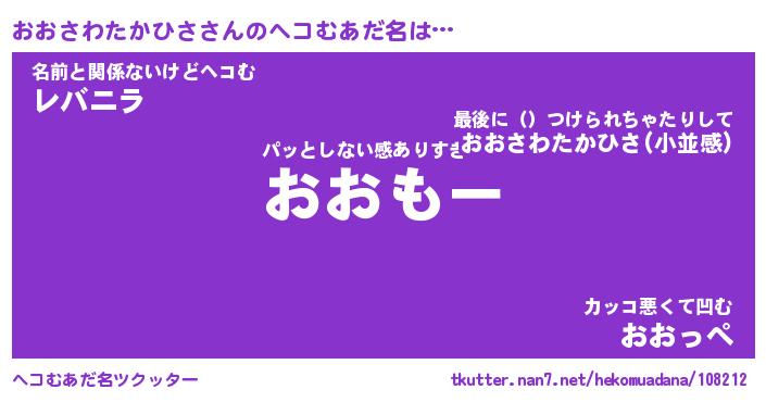 | 伝説のあだ名 | 『封印されしスナイパーおおさわたかひさ』 |