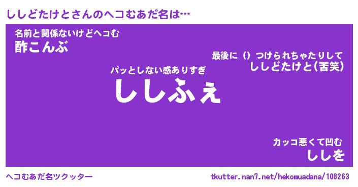 | 欧米人風あだ名 | 『マイケルししどたけと』 |