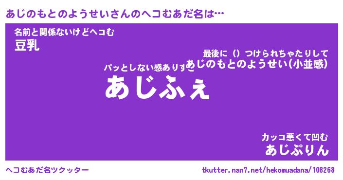 | ファンタジー風あだ名 | 『アジフェル』『ファントムアジス』 |