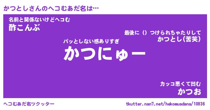 | 意味不明あだ名 | 『ペロリンかつとし』『永久保存かつとし』 |