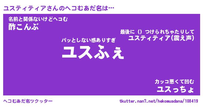 | 恥ずかしいあだ名 | 『プリティーユスティティア』『ユスちん』 |