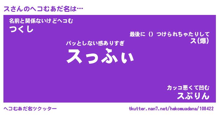 | 2回繰り返すあだ名 | 『スス』『スス』『にょろにょろ』 |