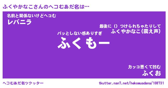 | 恥ずかしいあだ名 | 『プリティーふくやかなこ』『ふくっちょ』 |