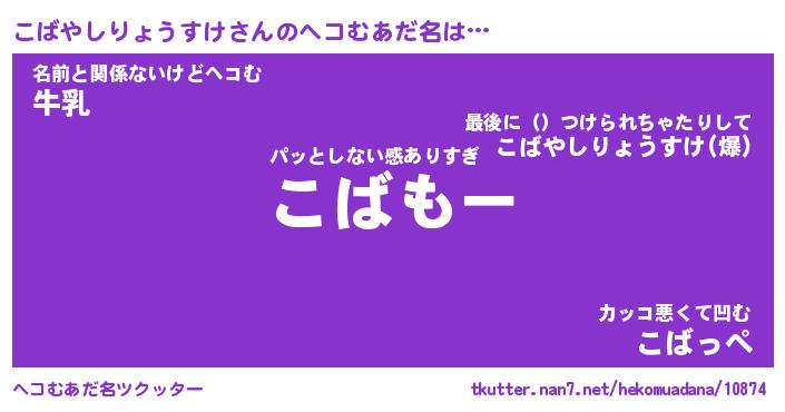 | ポケモン風あだ名 | 『コバチュウ』『コバヤダネ』 |
