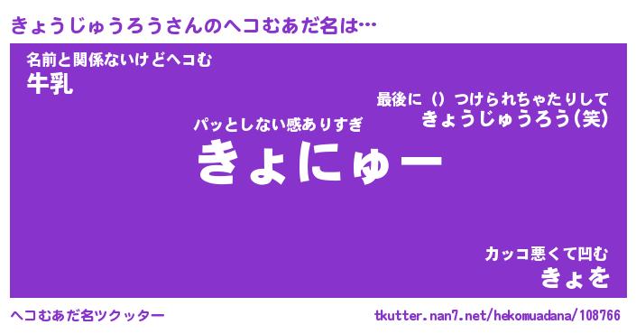 | 意味不明あだ名 | 『ペロリンきょうじゅうろう』 |