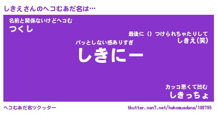 | 意味不明あだ名 | 『ペロリンしきえ』『しきえフォーエバー』 |