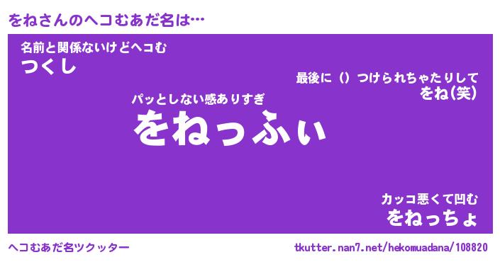 | ポケモン風あだ名 | 『ヲネチュウ』『ヲネダネ』『ヒヲネ』 |