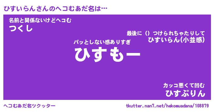 | 自動車の名前っぽいあだ名 | 『ヒスティマ』『ヒクア』『ヒント』 |