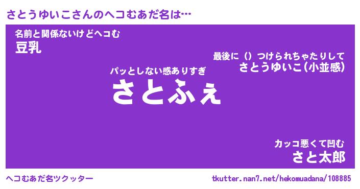 | ヒーロー風カッコイイあだ名 | 『スーパーサトウユイコ』『魔戒騎士サト』 |
