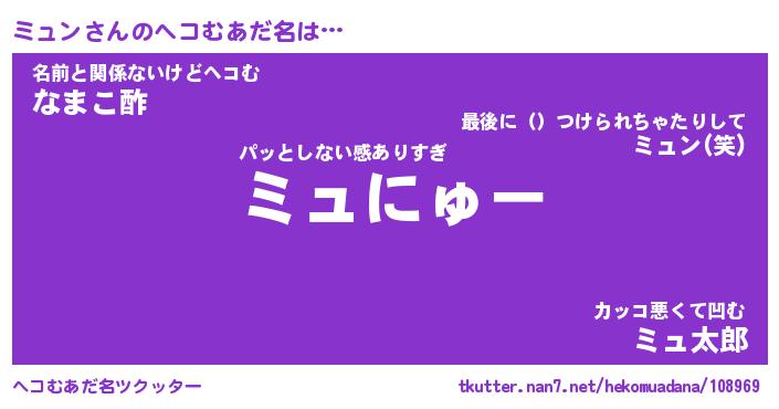 | ヒーロー風カッコイイあだ名 | 『スーパーミュン』『ウルトラミュンマン』 |