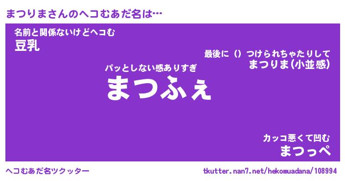 | 自動車の名前っぽいあだ名 | 『マツティマ』『マクア』『デミマ』 |