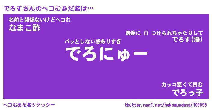 | 意味不明あだ名 | 『ペロリンでろす』『でろすフォーエバー』 |