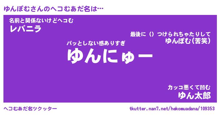| 意味不明あだ名 | 『ペロリンゆんぽむ』『永久保存ゆんぽむ』 |
