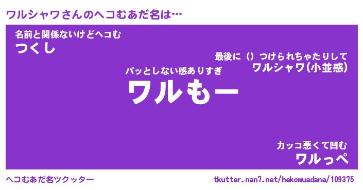 | ファンタジー風あだ名 | 『ワルフェル』『エターナルワルシャワー』 |