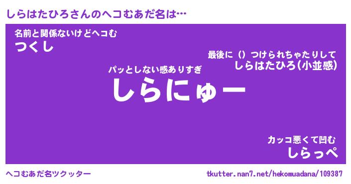 | 意味不明あだ名 | 『ペロリンしらはたひろ』 |