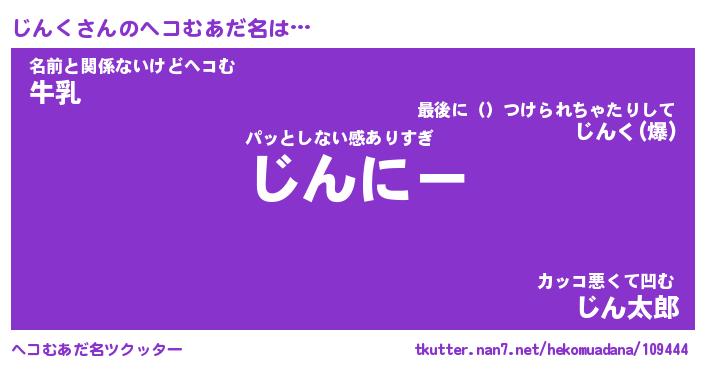 | 意味不明あだ名 | 『ペロリンじんく』『じんくフォーエバー』 |