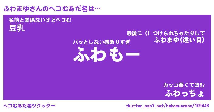 | ヒーロー風カッコイイあだ名 | 『スーパーフワマユ』『魔戒騎士フワ』 |