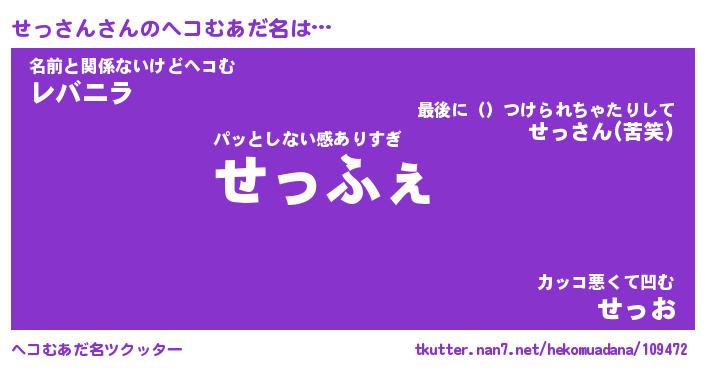 | 意味不明あだ名 | 『ペロリンせっさん』『永久保存せっさん』 |