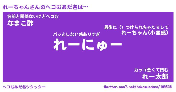 | 2回繰り返すあだ名 | 『れーれー』『れれーー』『いそいそ』 |