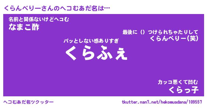 | 男性向けラノベタイトル風あだ名 | 『くらんべりーの憂鬱』 |