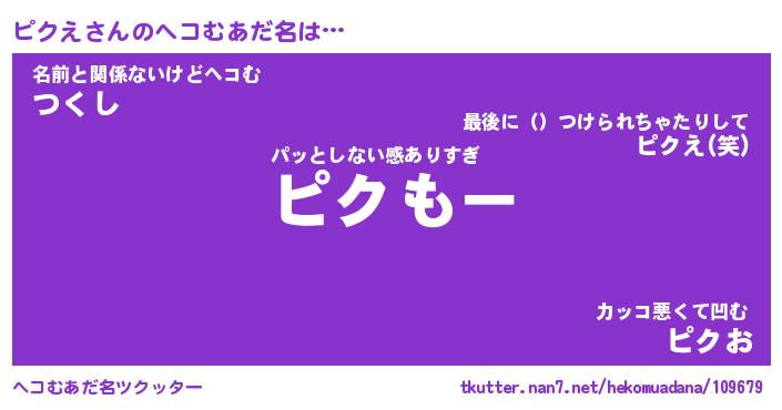 | 意味不明あだ名 | 『ペロリンピクえ』『ピクえフォーエバー』 |