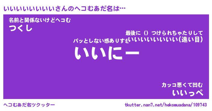 | 男性向けラノベタイトル風あだ名 | 『いいいいいいいいの憂鬱』 |