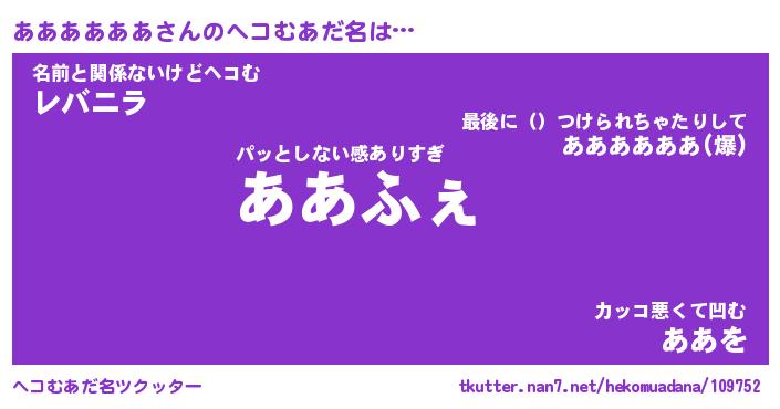 | 2回繰り返すあだ名 | 『ああああ』『ああああ』『ぬるぬる』 |