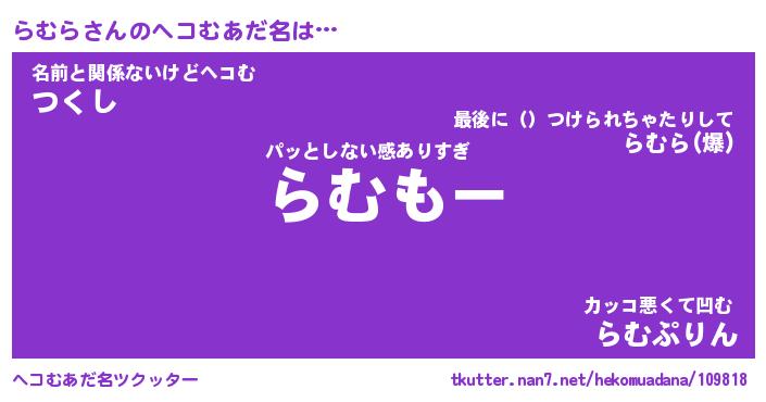| ヒーロー風カッコイイあだ名 | 『スーパーラムラ』『ウルトラらむらマン』 |